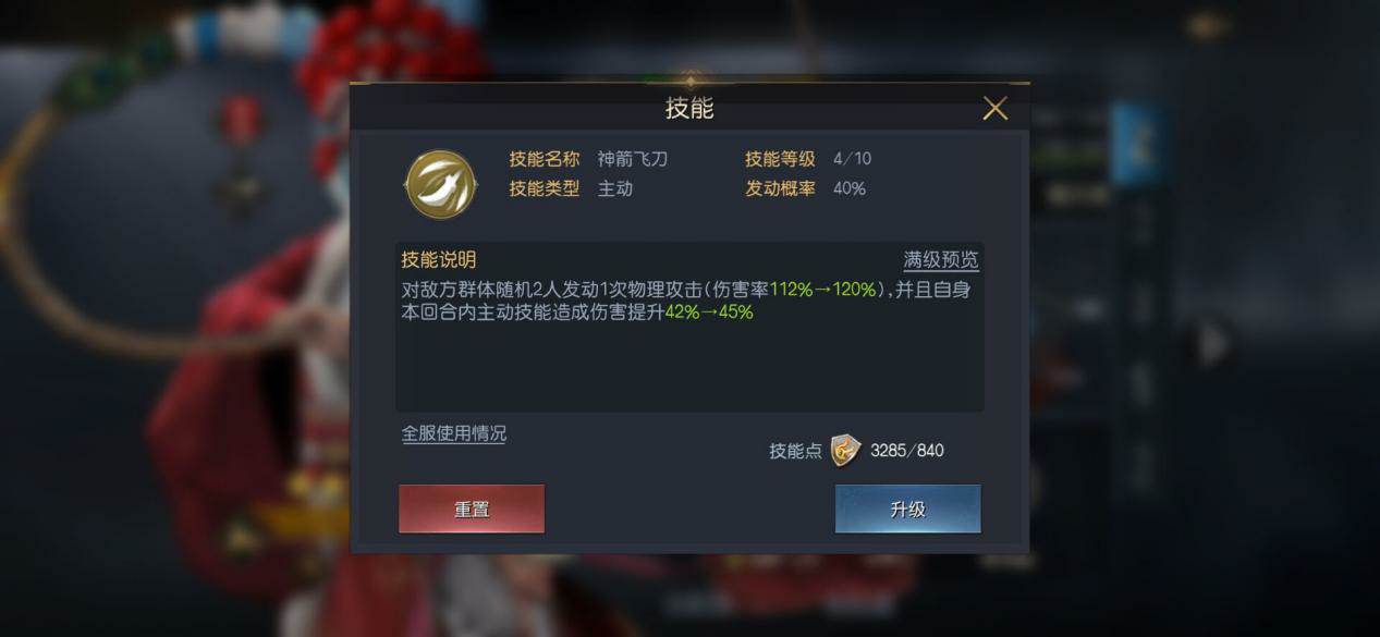 传承后技能等级上限为3级,之后便根据技能稀有度消耗对应稀有度的将领来进行进阶提高等级上限。所有技能传承后初始上限为3级,并且需要进阶3次才可达到满级上限。升级技能所需要的技能点很多,所以前期的技能点分配也是很重要的,大家一定要决定养哪位将领之后,千万不要浪费资源,决定好再去升级技能。