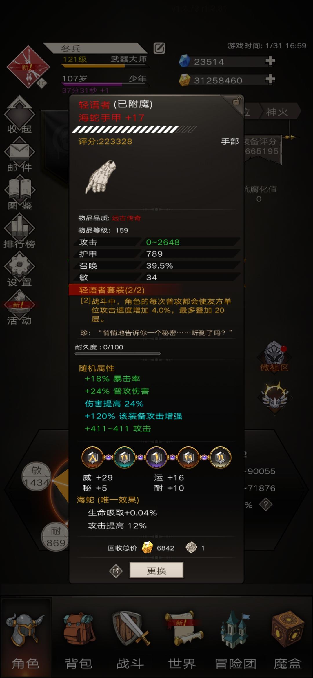 顺便提三个建议,万神打到150层即可,不要硬冲151以上,深渊现在收益很大,多在150以下深渊刷点腐化和红章有好处。尽量使用红图刷深渊,其他宝图现在产出不行。赤晶棺平民玩家升级到三个箱子就能开了,个人感觉掉宝值影响不大,后面提升需要钥匙较多。