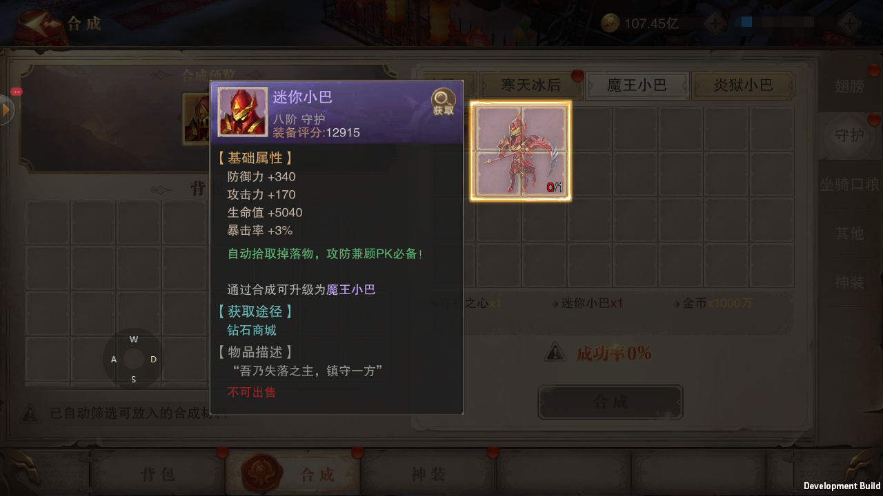 ● 同样的,4转也是新开放了八阶的专属守护—迷你小巴。继小熊猫之后终于又出了一个地上走的守护了,小熊猫终于有伴了有木有!这只新守护的属性偏向于PVP防御类型,爱好打架的大佬们可千万不能错过哦,同时,迷你小巴也可以使用守护之心和永恒之心来合成为更高级的魔王小巴和炎狱小巴,话不多说我们直接上图!