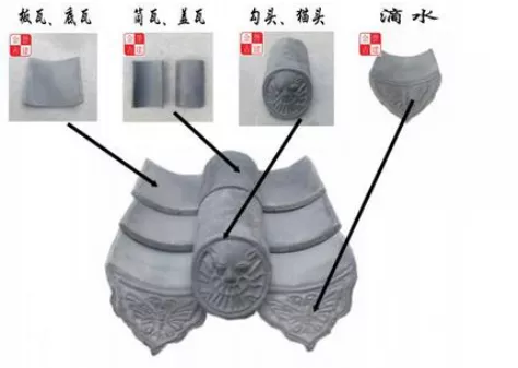 由于在宋代和清代采用不同的铺设方法,笔者并不确定游戏中采用哪种,大致上就是如图所示的铺设方法。但游戏中目前已知的建筑都无脊瓦。拓展: 在瓦的铺设方式上,宋代以“压四露六”为准,即第二块琉璃板瓦压盖下面第一块琉璃板瓦的上十分之四,暴露十分之六,第三块琉璃板瓦,又向上移动十分之六压盖第二块琉璃板瓦的十分之四,如此类推。第一块板瓦必须用檐口琉璃板瓦。清制则以“压七露三”为准。即第二块琉璃板瓦压盖下面第一块琉璃板瓦的上十分之七,暴露十分之三,第三块琉璃板瓦,向上移动十分之三压盖第二块琉璃板瓦的十分之七,如此类推。宋制和清制铺盖板瓦的方式,最大的不同点,在于宋制铺法不可能三瓦重叠:第三瓦和第一瓦之间,有瓦长十分之四的间隙,假如中间第二块琉璃板瓦破裂,屋顶可能漏水。清制铺法,四瓦重叠,第三瓦覆盖第一瓦十分之四,第四瓦仍覆盖第一瓦十分之一,即使第二瓦破裂,或第三瓦破裂,或第二、第三瓦同时破裂,仍不漏水。清制铺法,用瓦虽多,但安全性高。)