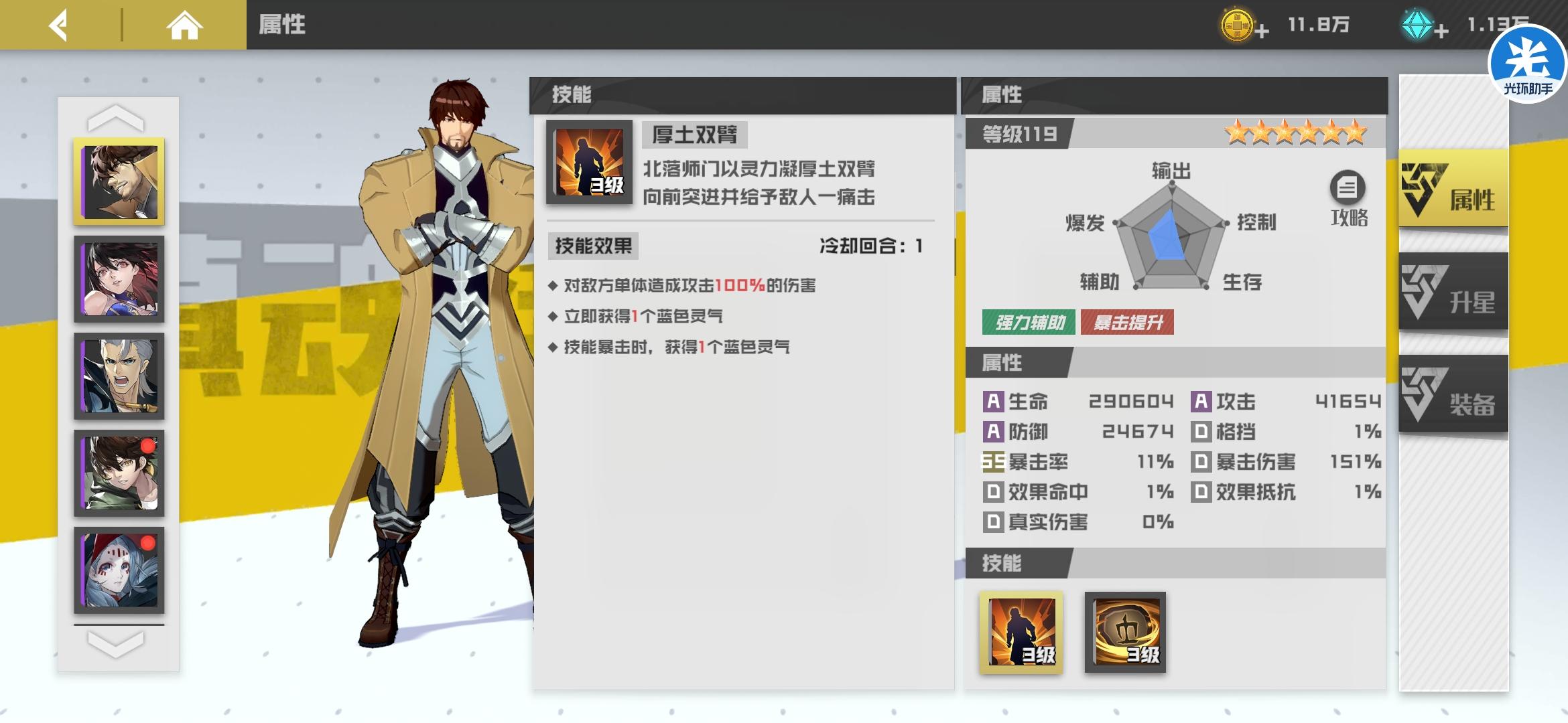 说下夏侯惇技能点搭配上来搭配石灵明的技能(别养石灵明他换技能更好)。暴击加集火加追击。技能首位置还可以回2气。