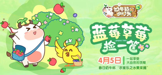 “春日奶牛杯之水果采摘”活动今日开启啦!小伙伴们快去游戏中的密林捡拾蓝莓、雪桃、石榴等野果,需要收集至少3种水果,每种各10个,背包或木箱中的截图都可以,将截图发在评论区内,球球会在评论区内抽取10名幸运的小伙伴,赠送定制豪华礼包一份哦!