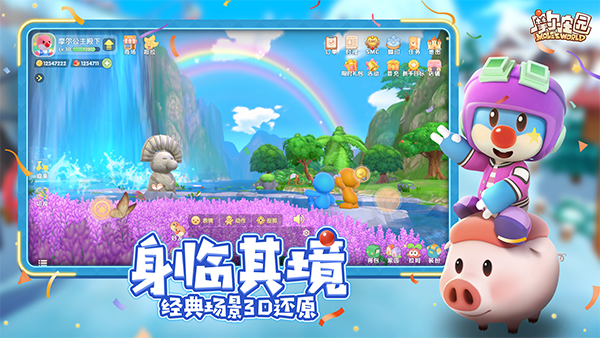 《摩尔庄园》手游全面升级为3D世界,将摩尔城堡、摩尔拉雅雪山、淘淘乐街、浆果丛林等经典场景以更立体、真实的形象呈现,摩尔们可以畅享不同地形的互动乐趣,进行滑雪,游泳,骑车等运动,身临其境地沉浸摩尔世界。