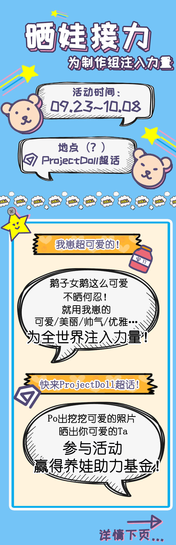 关注新浪微博@Project_Doll官方微博 并转发活动微博,抽取5名小伙伴每人获得100元协力基金