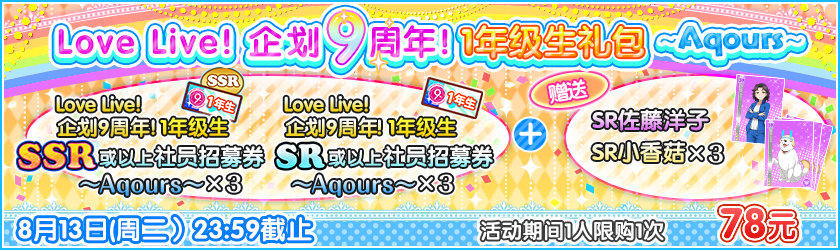 ・Love Live! 企划9周年!1年级生SR或以上社员招募券~Aqours~