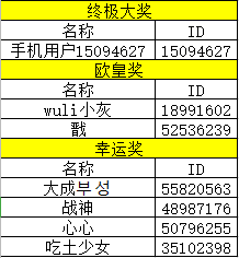 我们游戏明天就要测试啦,现在我们公布获得福利奖的10名玩家