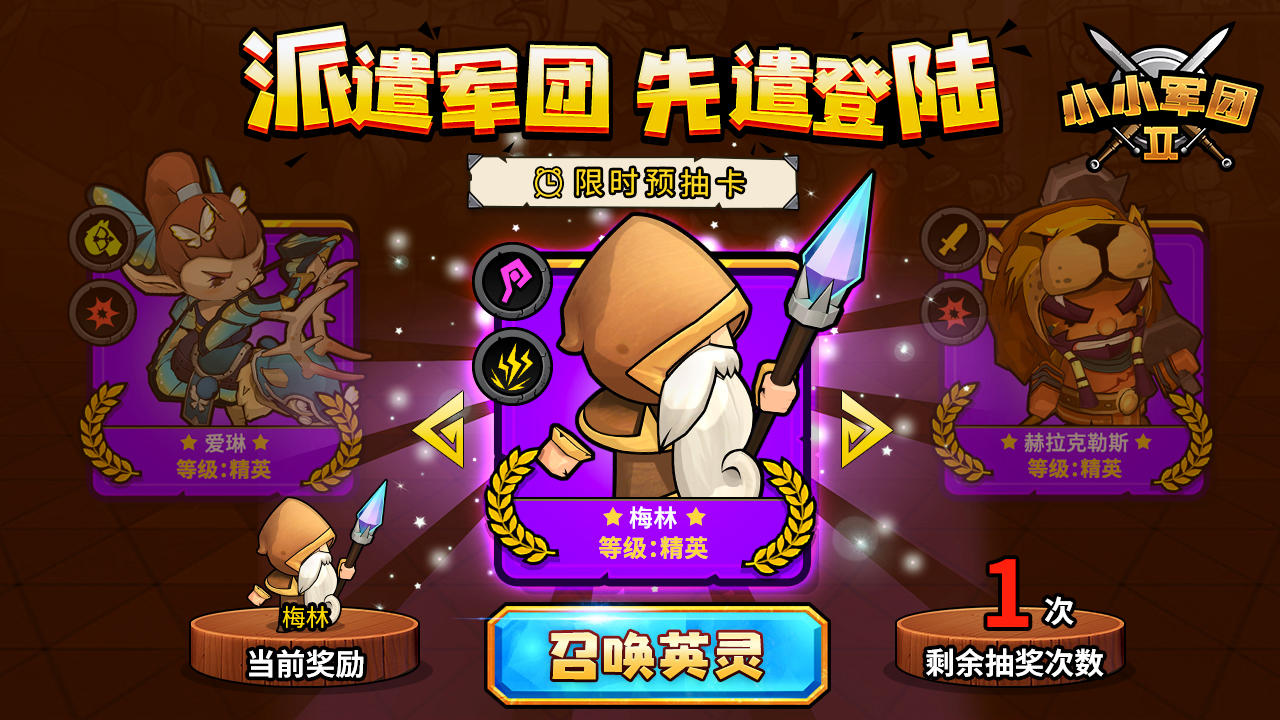 点击【召唤英灵】,消耗本页面的一次抽奖机会进行军团英灵召唤。领主大人可以进行多次召唤,最终只可保留一位军团英灵,在游戏公测开服后与您一同登陆帕诺普~