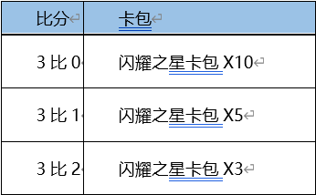 4、每场比赛获得胜利的玩家可以根据当场比赛的比分获得一定数量的卡包奖励,奖励将在当场比赛结束后立即通过邮箱发放,具体奖励数量如下: