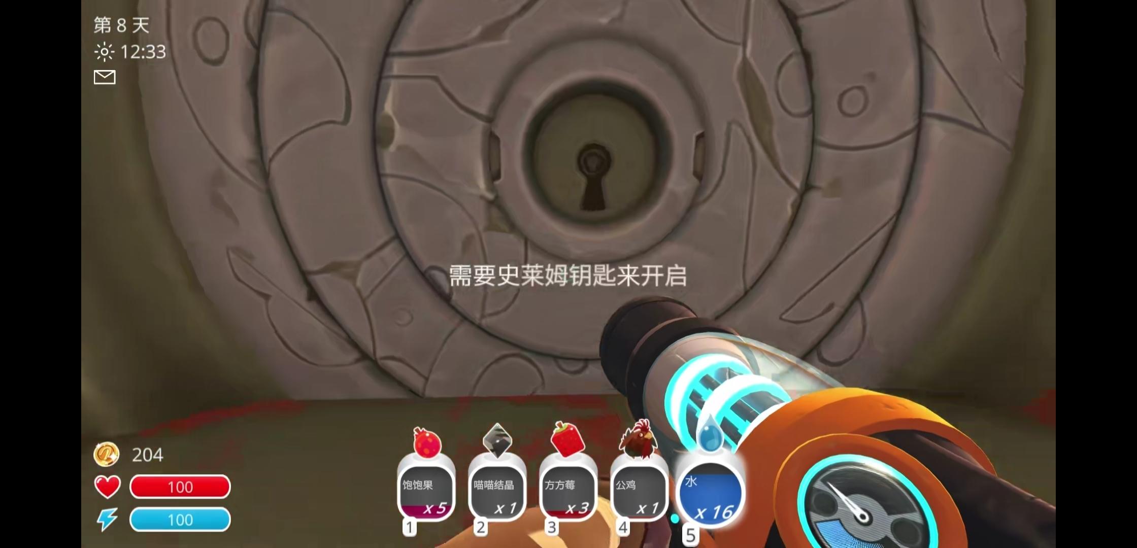 玩家在游戏中会以第一人称视角控制农场主,手持史莱姆吸纳枪(没错,毫无攻击力———不过你可以将姆姆们吸到枪口然后把他们弹开),开发商为了增添游戏的趣味性,在农场中加入了以姆姆为食的焦油怪。那么我们手持一把毫无攻击力的吸纳枪怎么对付它呢?那当然就是跑啊,它连农场主也吃(笑)。