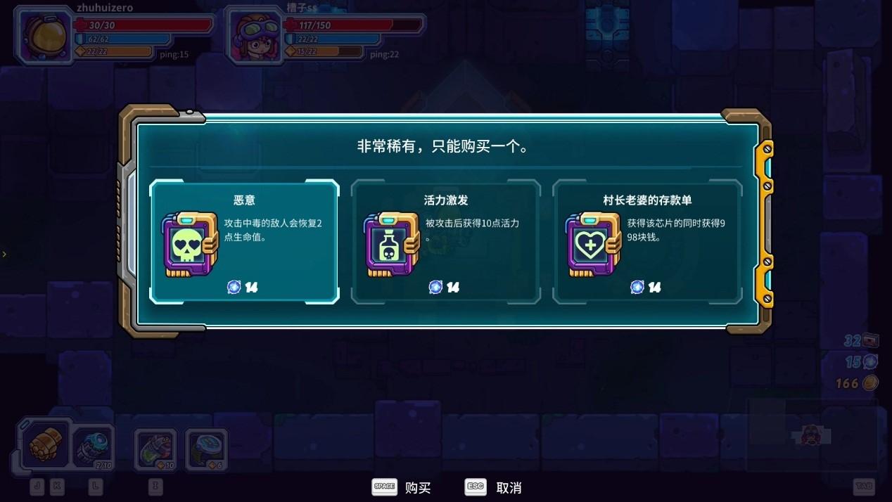 玩家可以通过击败敌人掉落/购买/探索获得芯片,在有限的槽位和资源下组合出特殊的效果。