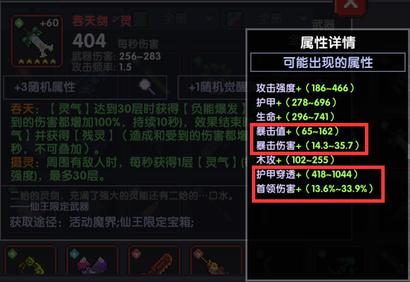 根据上述暴击、首领、穿透三条属性的展开,三把武器,一共9条属性,我们基本已经可以确定洗2条暴击、2~3条穿透、2~3条首领伤害的框架,剩下的词条我们则分配给属攻和爆伤。