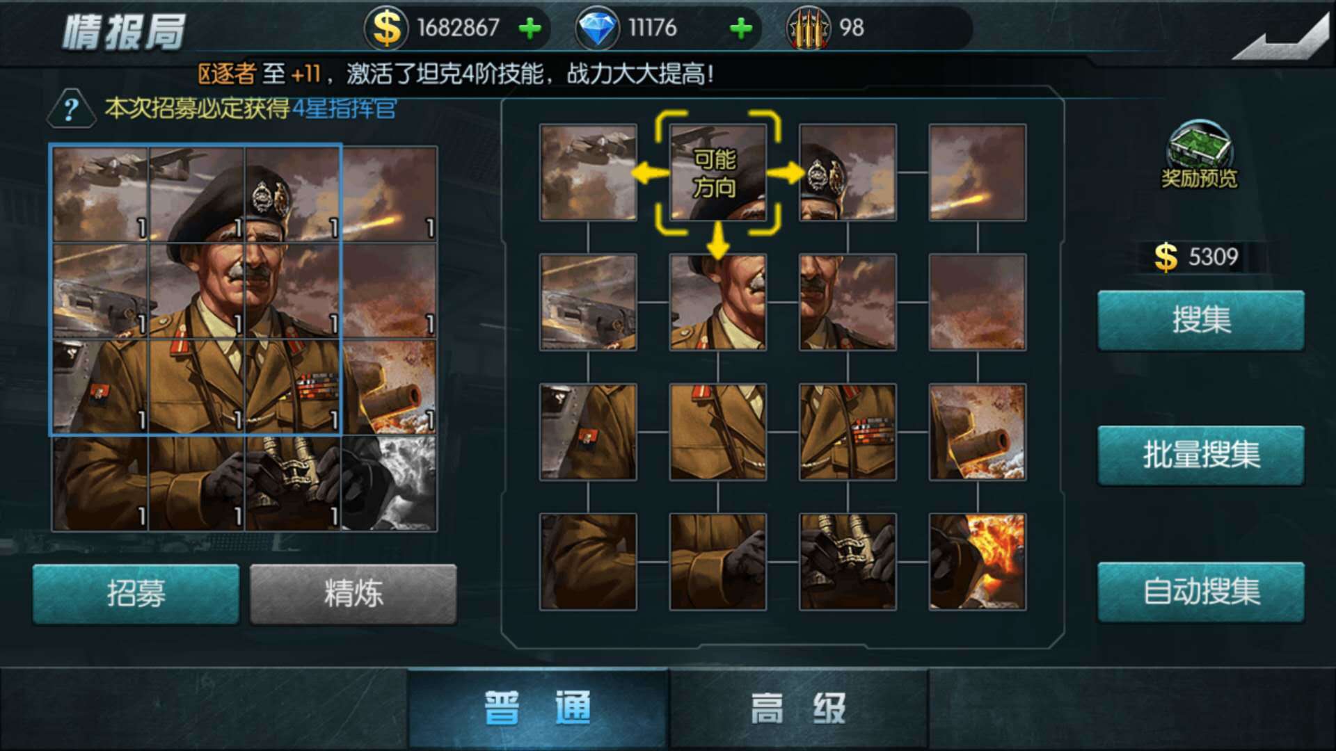 指挥官主要获取来源为指挥官学校中的情报局,而历练点则需要分解多余的指挥官拼图碎片来获取,当金币多时可以多去搜集碎片兑换成历练点,运气好的时候还能够获取到5星指挥官哦