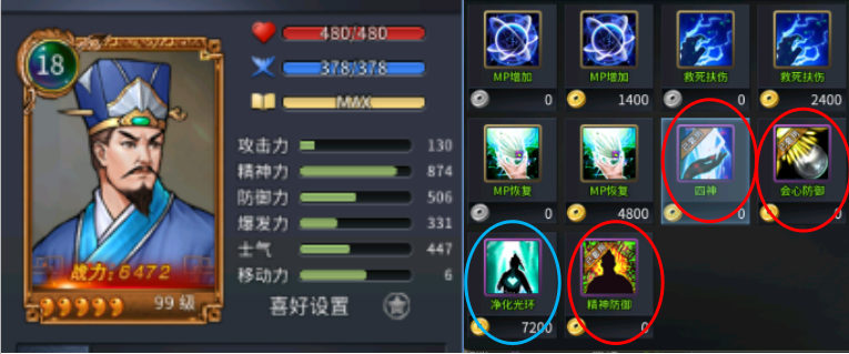 红圈必开技能,蓝圈优先,绿圈个人选者