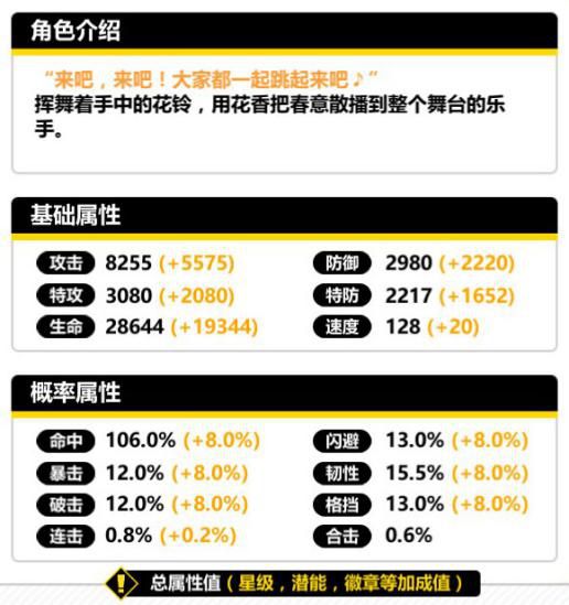 (花铃乐手1级初始属性VS满级满星级满潜能属性)