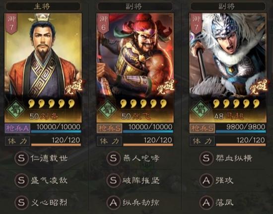 A级全有,S级:虎豹骑、杯蛇鬼车、刮骨疗毒、藤甲兵、魅惑、长驱直入、盛气凌敌、义心昭烈、破阵摧坚、合军聚众