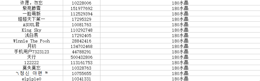 祈愿赢水晶&周边福袋获奖名单公布~~~~