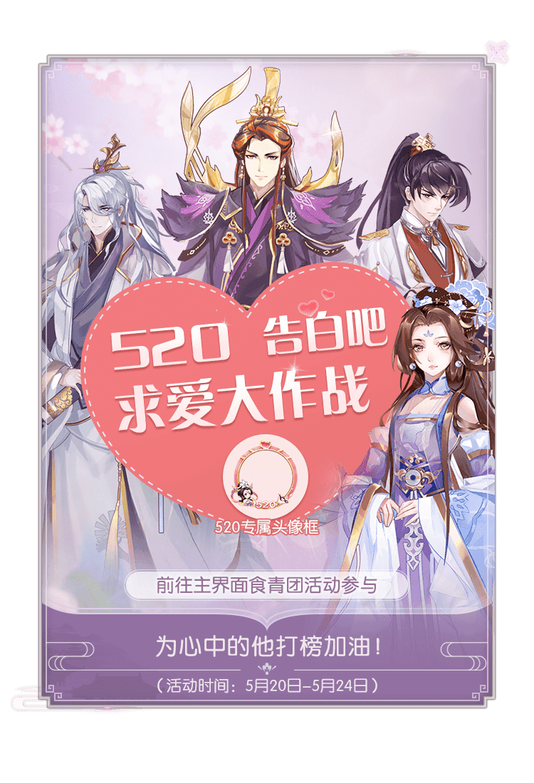【活动奖励】:本次活动投放了诸如觉醒丹、将星、称号等实力奖励,更为各位殿下准备了520专属头像框、气泡框~更多惊喜,还请殿下移步游戏,自行探索。