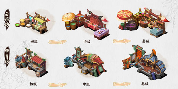 俗话说工欲善其事必先利其器,有一流的项目,更要有一流的硬件。武器、防具、配件、宝物等多种产品需求,一张万金油工坊怎么够?专业而考究的工坊,让打造工艺更加精细,高级工坊更是有化腐朽为神奇之能,所出皆无凡品。同时,还能根据店铺发展规划,分配工坊的升级侧重,万行做不如一行精!