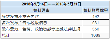 总共有1089名用户被禁封(其中202名是通过用户举报核实后禁封):