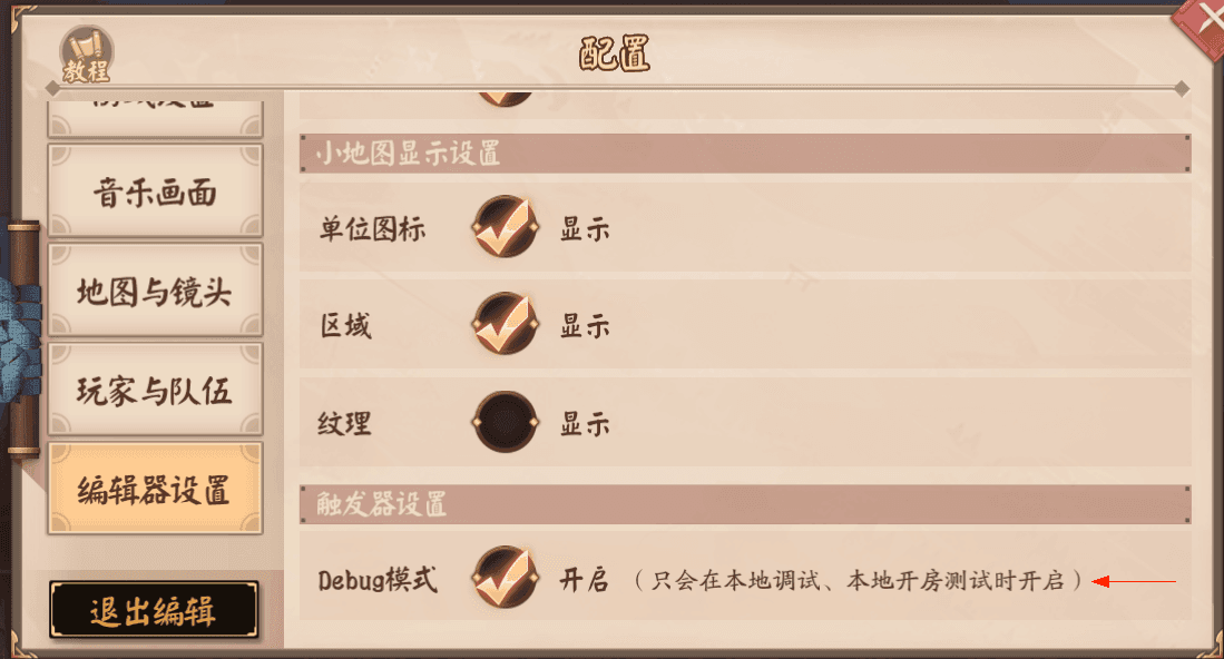 若要使用该功能,需要先在编辑器设置中打开Debug模式的开关。