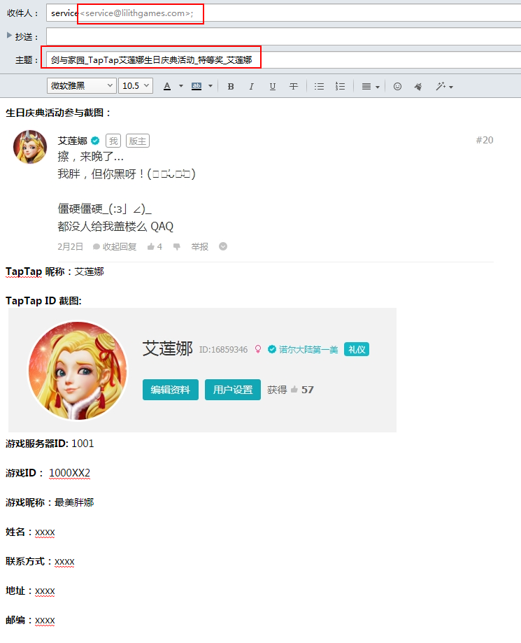 2. 邮件内容:请在邮件内提供以下信息以供我们核实身份及寄送礼品。