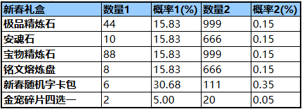备注:以上概率均为单个开启「新春礼盒」的概率