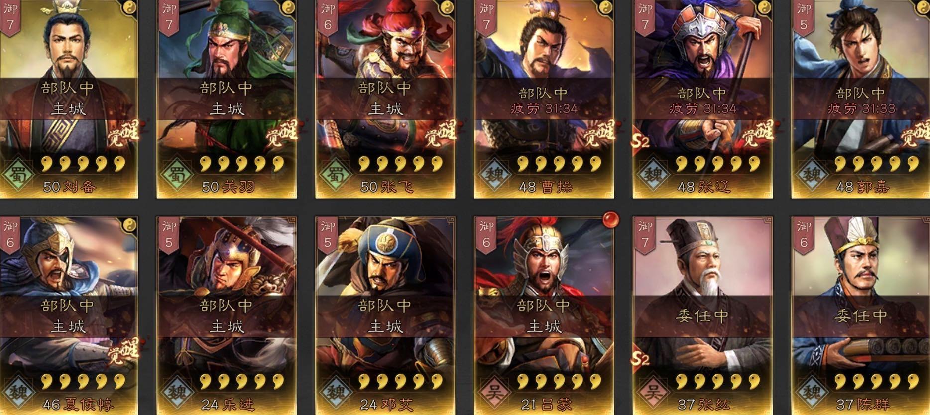 劣势:没有治疗战法,打高级地容易高战损,不适合持久战,主动技能较多,怕遇到诸葛亮。