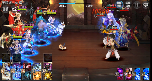 88层第一关对面是项羽+吕布+双木兰,继续用标准打法,开局男枪一技能造成敌方木兰和吕布一血,然后男枪aoe收掉同时刷觉醒条。作为唯一能对我方造成威胁的项羽单体,实际发出来也并不是不可承受,挡住这一击后剩下的敌方技能已经毫无威胁,剩下的就是等待男枪一技能刷新稳稳通关了。