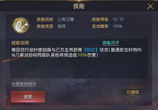 特别小提示:阿提拉的上帝之鞭是行动触发,所以他的速度需大于吕布才能共享群攻。