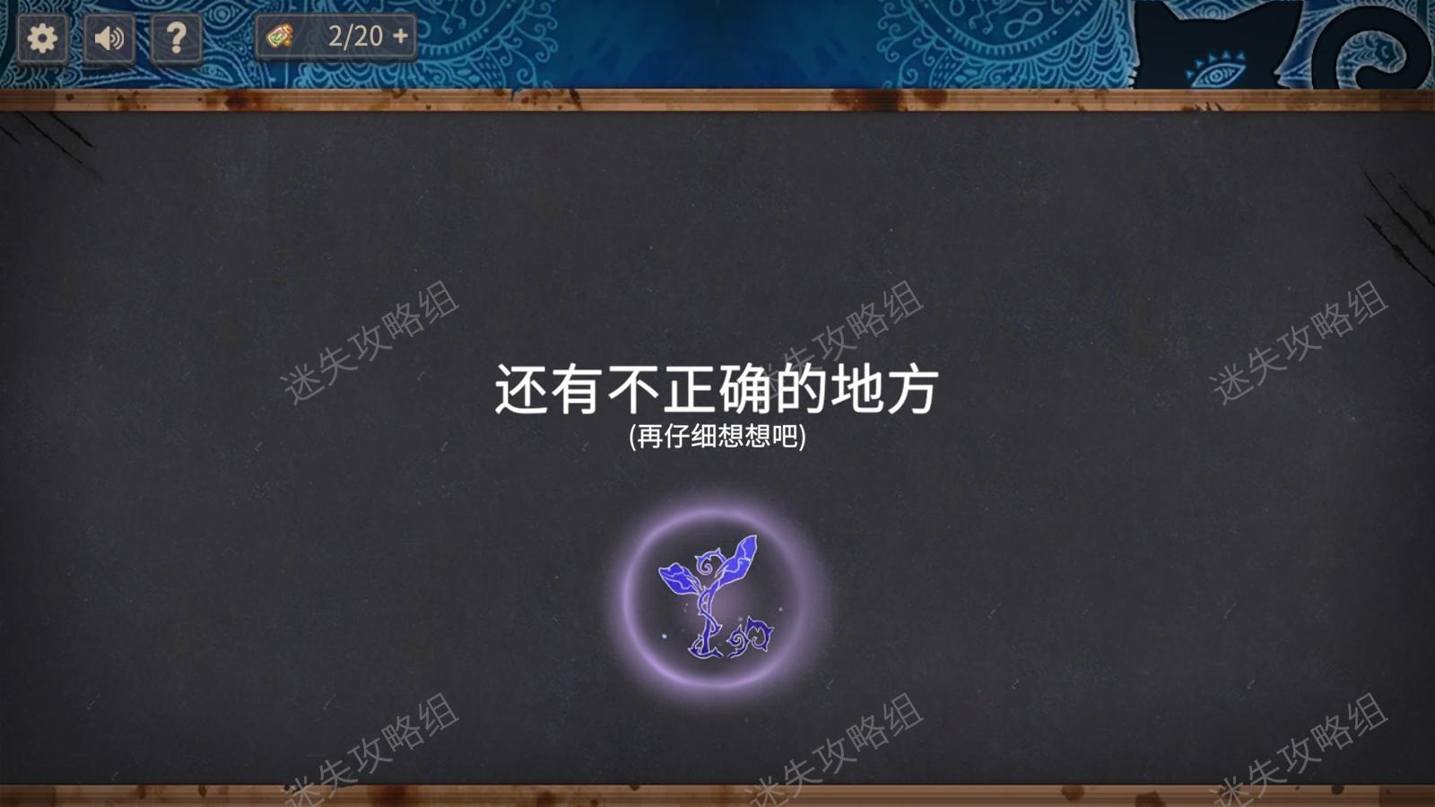在玩家进行游玩答题时,倘若问题回答错误,在伴随着幽幽的提示音响起的同时,游戏右上角的蓝色花纹背景布会突然浮现出一只睁开诡异双眼的黑猫剪影。在画面细节上也进行了部分的处理。