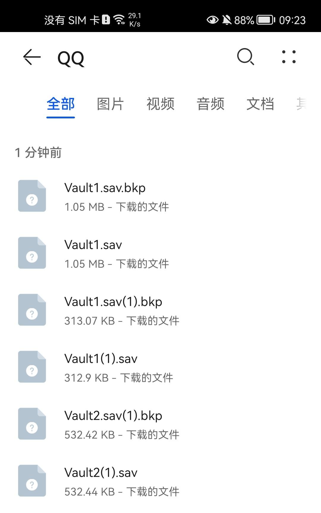 这就是你刚刚在QQ上下载好的存档,如果文件名有重复,系统会添加一个(1),如果两个重复,第2个不会是添加(1),而是添加(2),这是系统为了区分文件,所以一次下载存档的时候,尽量不要在QQ下载太多重复名称的存档↑