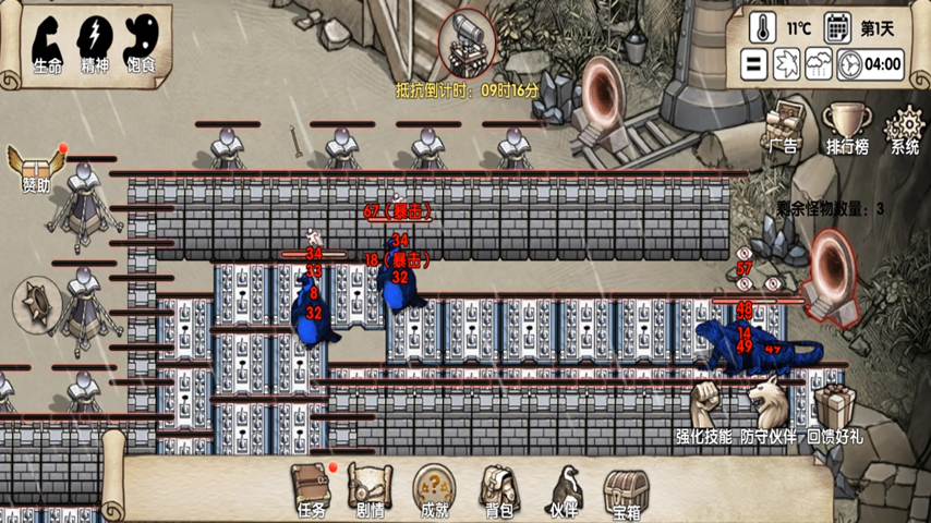 需要建造稳固的防御设施,来抵御怪兽的入侵。