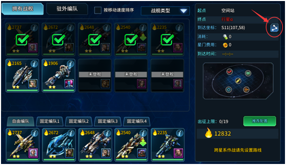 当然你也可以选择跨星系进行贸易,不过跨星的贸易必须要舰队护航还可以贸易。但跨星系必须自己选择路线(点击到达目标后面的按钮就可以进行选择路线了),如果途中经过其他军团的星门的话必须缴纳一定量的手续费。