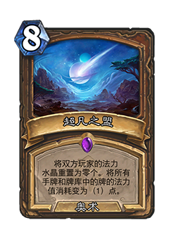 旧:[7点法力值消耗]→ 新:[8点法力值消耗]开发者注释:虽然超凡之盟通常不会用于搭配手中的爆发伤害卡牌,但在它的作用下,离谱的场面总是来得比我们预期得更快一些。提高一点法力值消耗可以让对手在超凡之盟前有机会做好应对的准备。