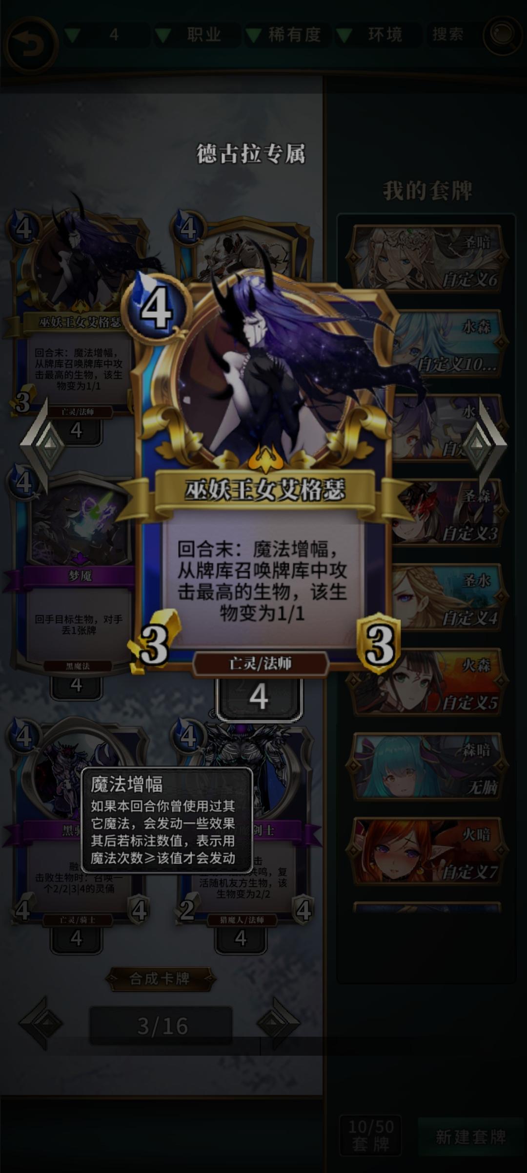 原3费的孤注特性的梦魇,现在变成了4费但不再孤注,史诗级加强,可以回手更多魔免生物和英雄外,像一些融合特别强力的职业遇到德古拉变得胆战心惊,很可能一个融合反而被丢掉。
