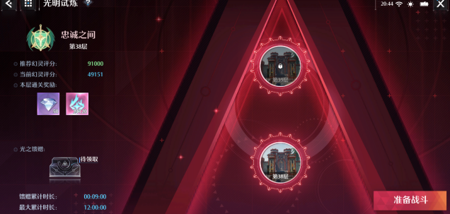 Tips:建议每天都在光明试炼上花点时间,没事就去摸一摸。前期打到战力上限最高层,对于人物经验等级的提升至关重要。