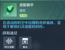 潜能精华(解锁幻灵潜能所需道具):时空圣殿、集市里时空商店购买产出。