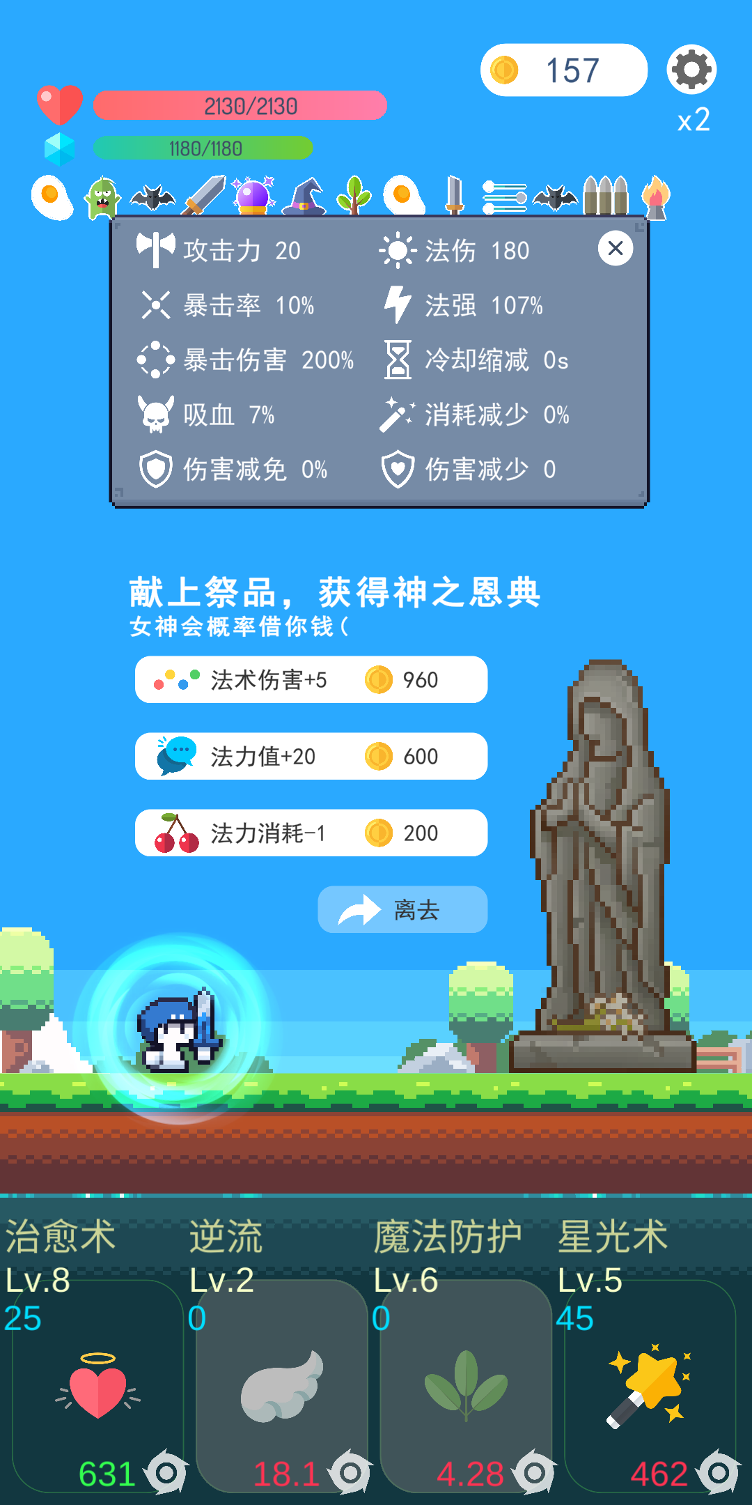 这个攻略适合所有人,我的思路是这样的武器选择蓝剑防具选择兜帽这个两个东西很便宜玩个几把都能买的起!武器可以加法伤,防具可以回蓝尤其是打到20关以后,小怪打的太疼了需要治愈术续航,要知道游戏难的点就在前期!