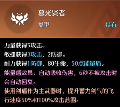 1、【暮光贤者】提高了薇莉安的防御能力,剑盾蓄力攻击范围更远,提高了自己生存能力。