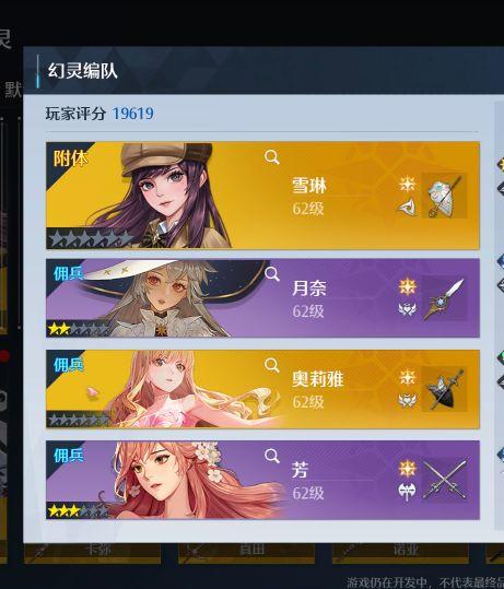 在本套阵容中,四位光属性的幻灵可以造成压制效果,降低目标80%的攻击力。雪琳作为影舞输出高,开觉醒技能以后就是疯狂。芳为斗士负责配合奥莉雅一起抗伤害。奥莉雅虽然为贤者,但是护盾也是非常得高,完全可以作为近卫来抗伤害,月奈负责后排回血,是非常好的一套组合。