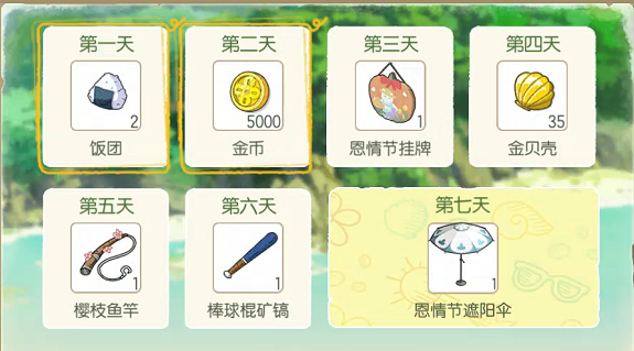 本周的七日登录活动也为大家准备了丰富的奖励哟!除了有实用的金贝壳、樱枝鱼竿、棒球棍矿镐外,还有恩情节主题家具——恩情节挂牌、恩情节遮阳伞可以领取哦~村民们一定要记得每天登录游戏领取奖励哟!