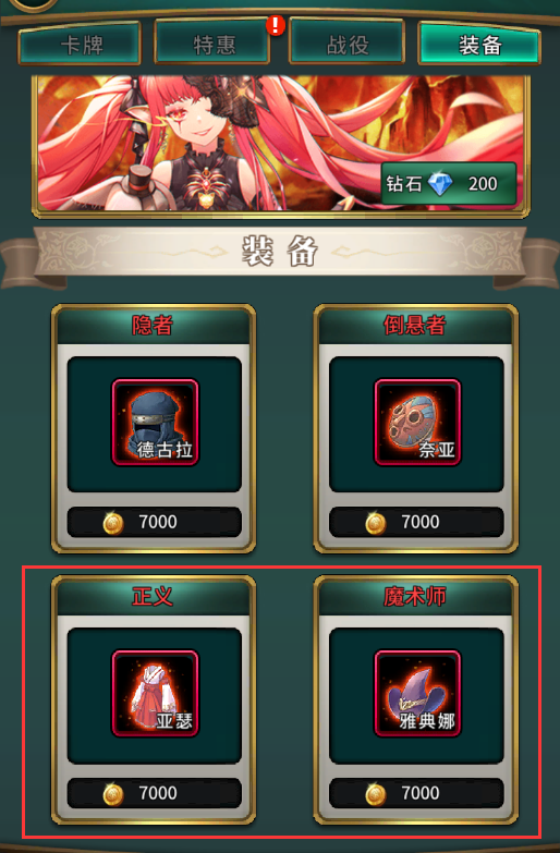 以下卡牌只能通过宝具获得,无法在游戏中构筑这是穿戴转生防具 魔术师的雅典娜,英雄卡战败时可获得的女神元神,女神元神依附的生物战败时可将“魔术师·雅典娜”和“战争女神雅典娜”其中之一随机洗入牌库(随着版本轮替将来还会增加更多女神形态):