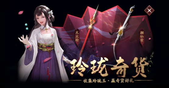 活动期间,少侠可消耗元宝获得「奇货券」参与宝物争夺,每次投掷的点数之和对应货架上的11种奖励,有机会获得「500元宝」、「珍品心法任选礼」、「玲珑玉」等好礼。