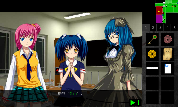 此后进入任意一个教室都会触发获得【金币】的剧情。