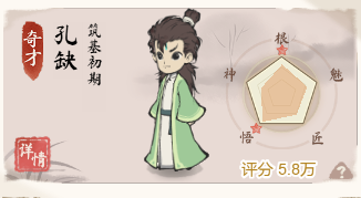 奇才——孔缺属性【臣官世家】:物理减伤率:5%,根骨:-5,魅力:-5,神识:+6
