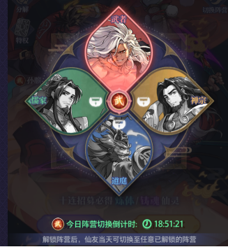 (3)阵营招募每天可以招募的阵营是特定的。如果你当天希望抽其他阵营的仙灵,需要使用灵玉更换阵营,每次300灵玉。
