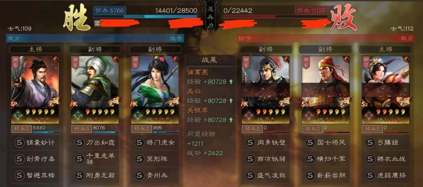 总结:这套阵容的机制方面的确挺无脑的,首先在输出方面关妹自带和青州兵就有了稳定的输出,配合SP诸葛亮基本上关兴和关妹的伤害都可以比较轻松的破万,在回复方面算是这个队伍最大的亮点,场均回复基本上都能达到1W左右的水平,对方打不出4W的伤害就很难输,减伤方面箕形阵配合暂避其锋,可以防止高爆发菜刀队前期的无脑输出,舍得给战法的半红完全可以直接安排玩起来!