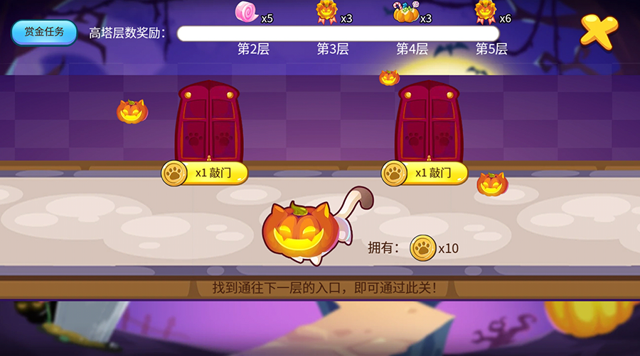 打开门遇到了追逐大作战!敲开箱子嚯敲击到南瓜猫可以领取糖果或道具奖励,南瓜猫就躲在箱子后面哦,鱼友们仔细观察!~