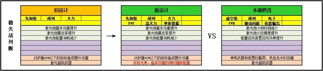 文章接下来的内容将对粒子战列舰、激光战列舰、磁轨战列舰和导弹战列舰以横向对比的形式两两评述,并对具体的修改方案及推导过程、预期结果进行详细说明。