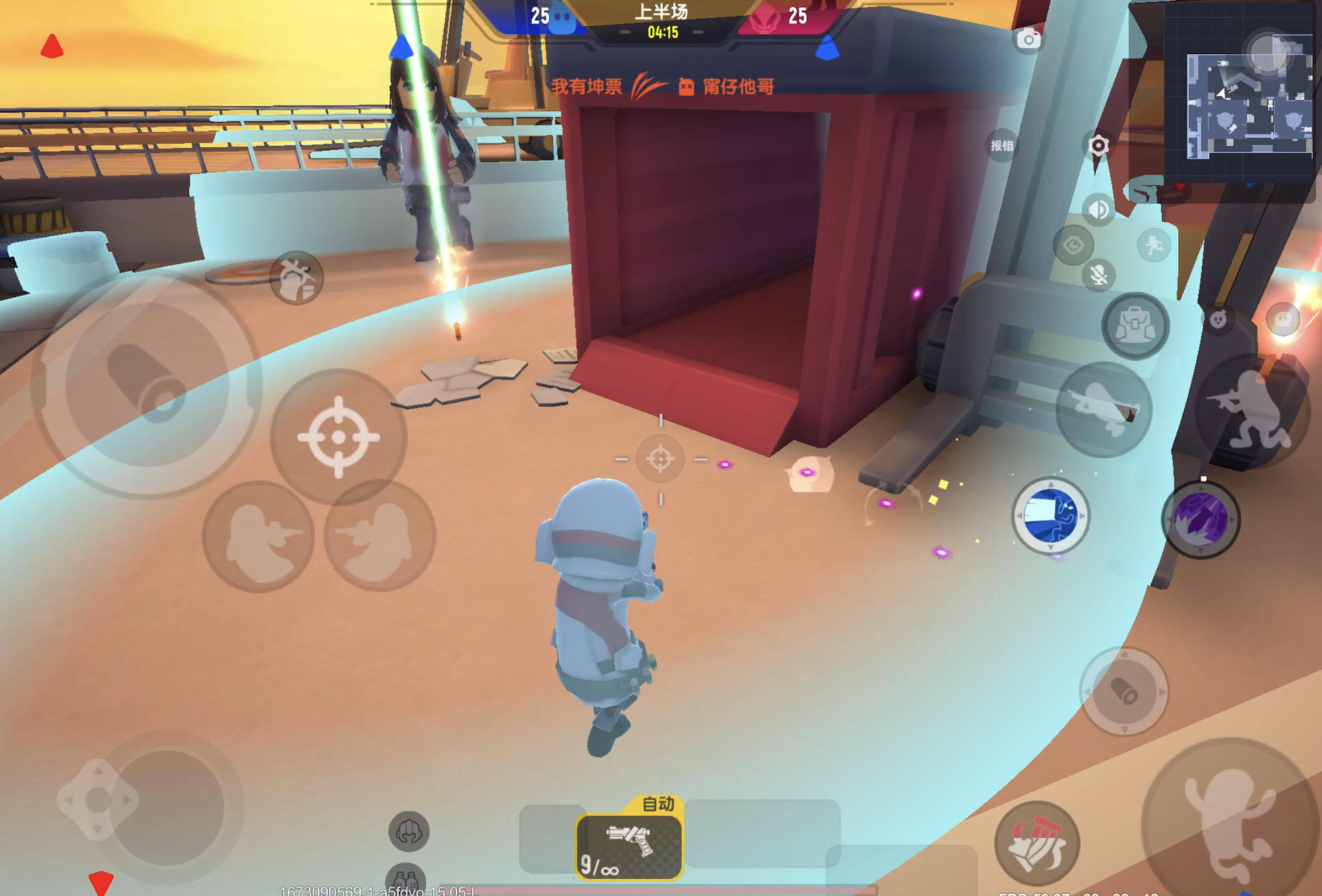 ②作为怪兽方时(与狼人派对相似)近身香肠时 开启强化跳跃能力的技能,并 不断控制摇杆左右摆动,使敌方失去视野,避免近身时被反咬一口